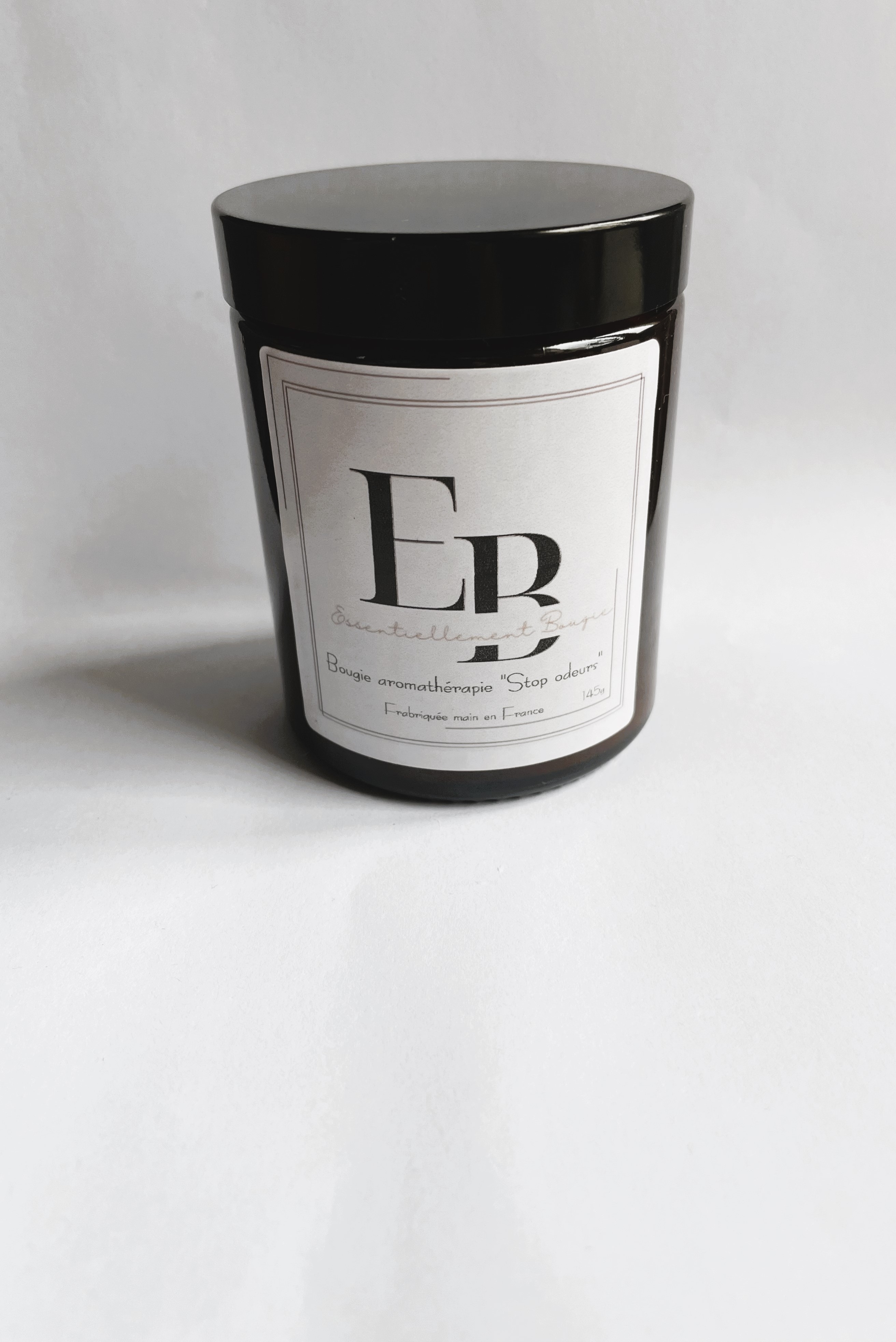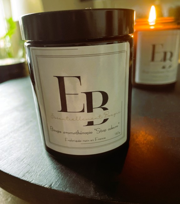 La bougie aromathérapie "Stop odeurs" contient de l'huile essentielle de Géranium rosat et de l'huile essentielle de Lavande vraie.