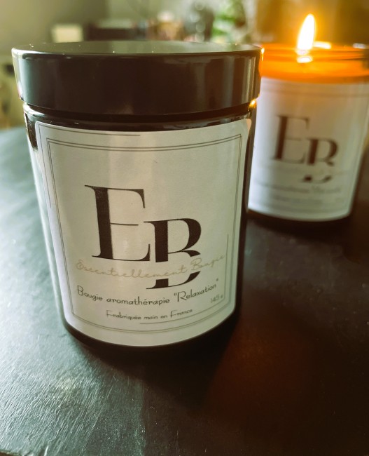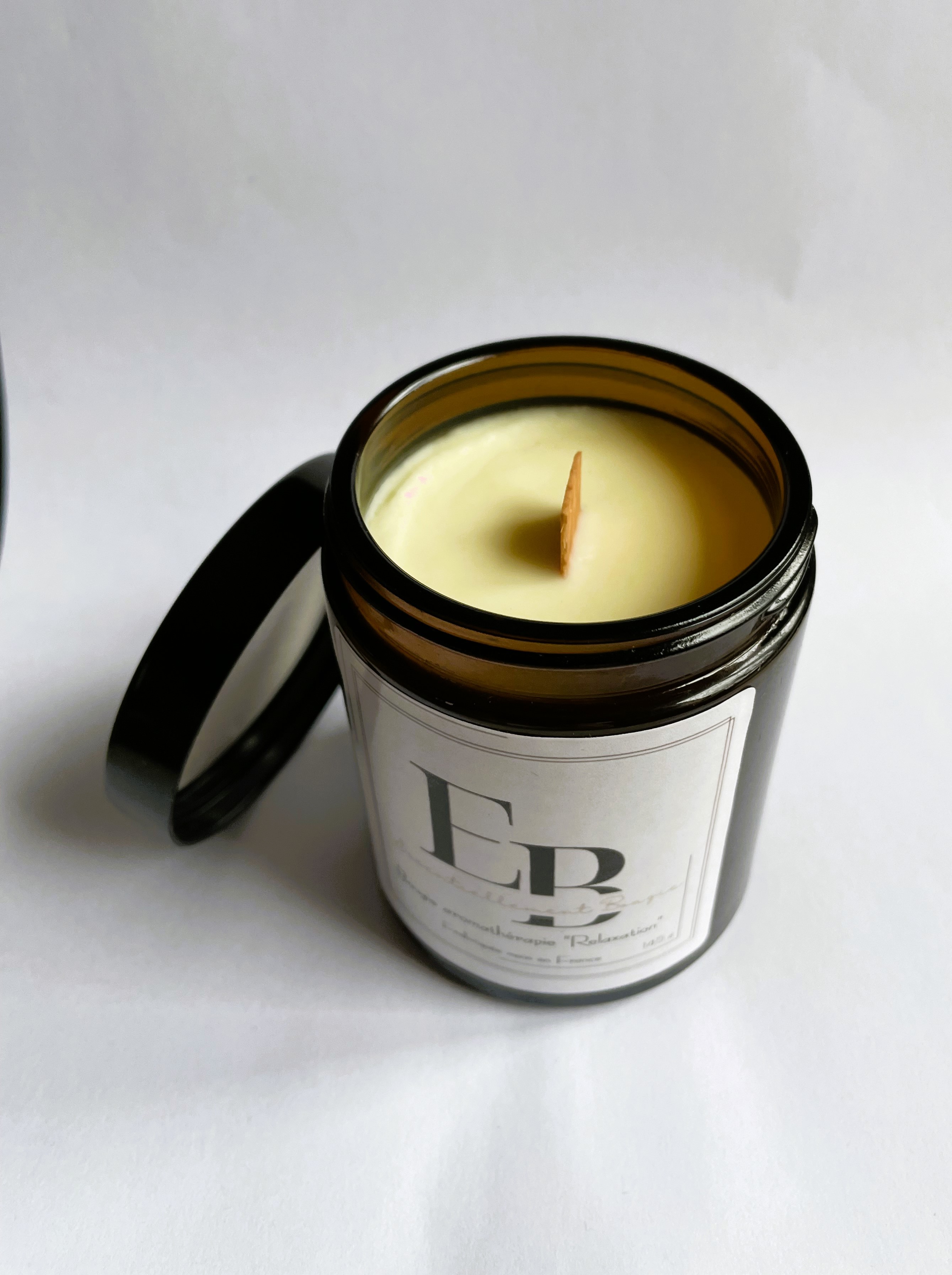La bougie aromathérapie "Relaxation" contient de l'huile essentielle d'Orange douce et de l'huile essentielle de Lavande vraie.