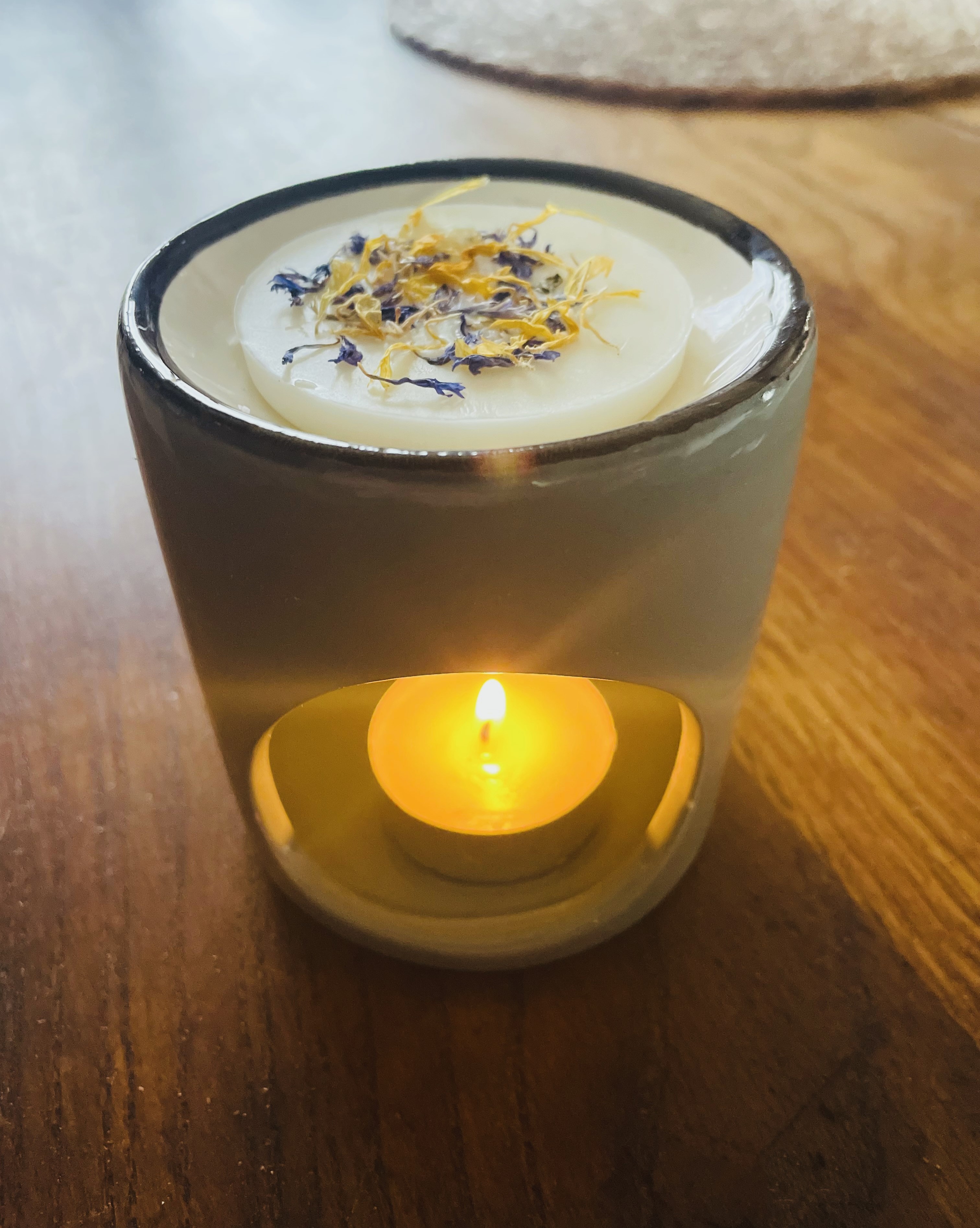 Un fondant s'utilise avec un brûle-parfum (ou diffuseur-brûleur). Il suffit de déposer votre fondant sur la coupelle du dessus et de placer à l'intérieur du diffuseur, une bougie chauffe plat.
