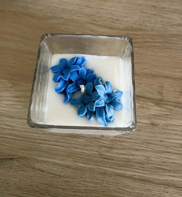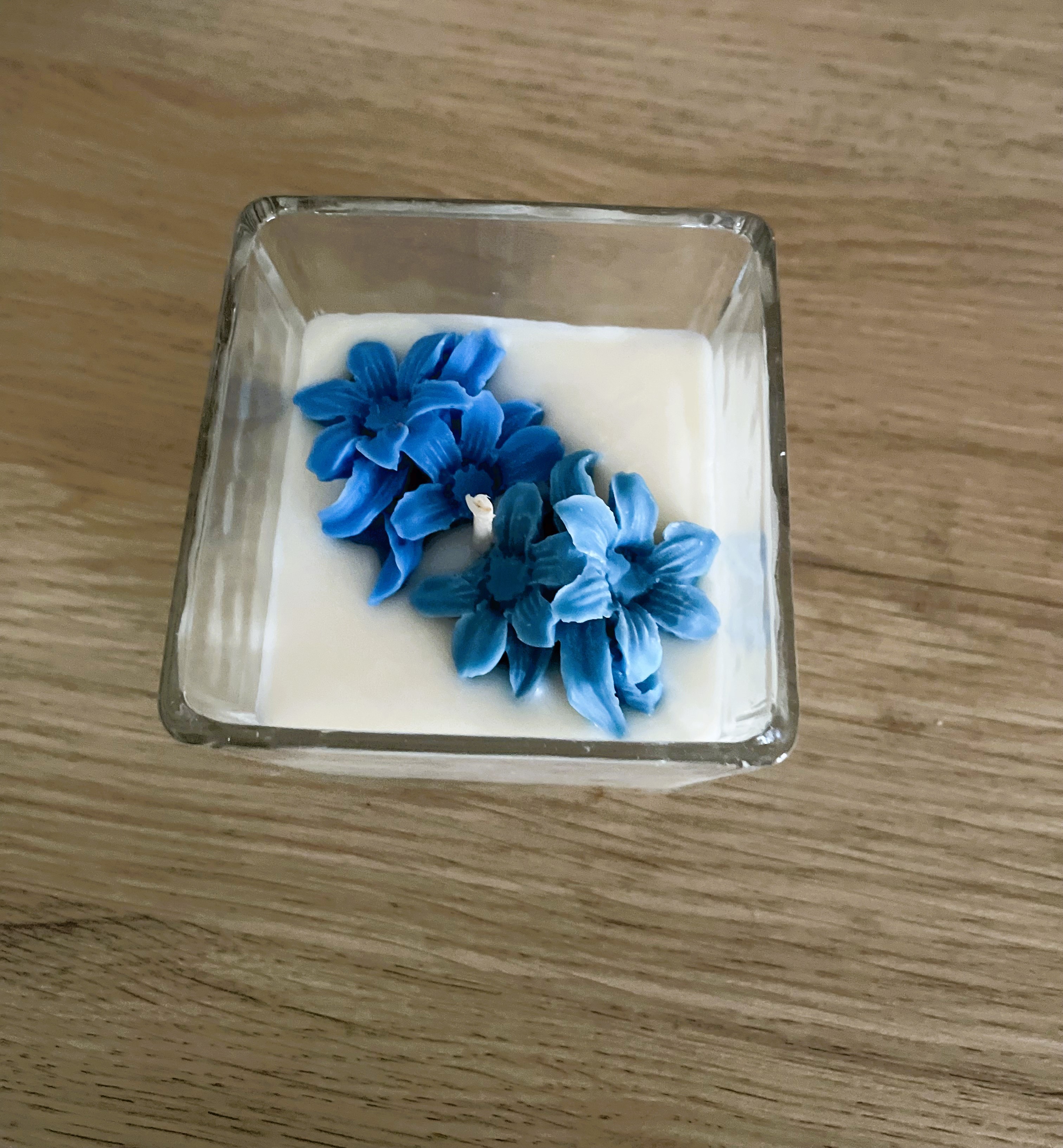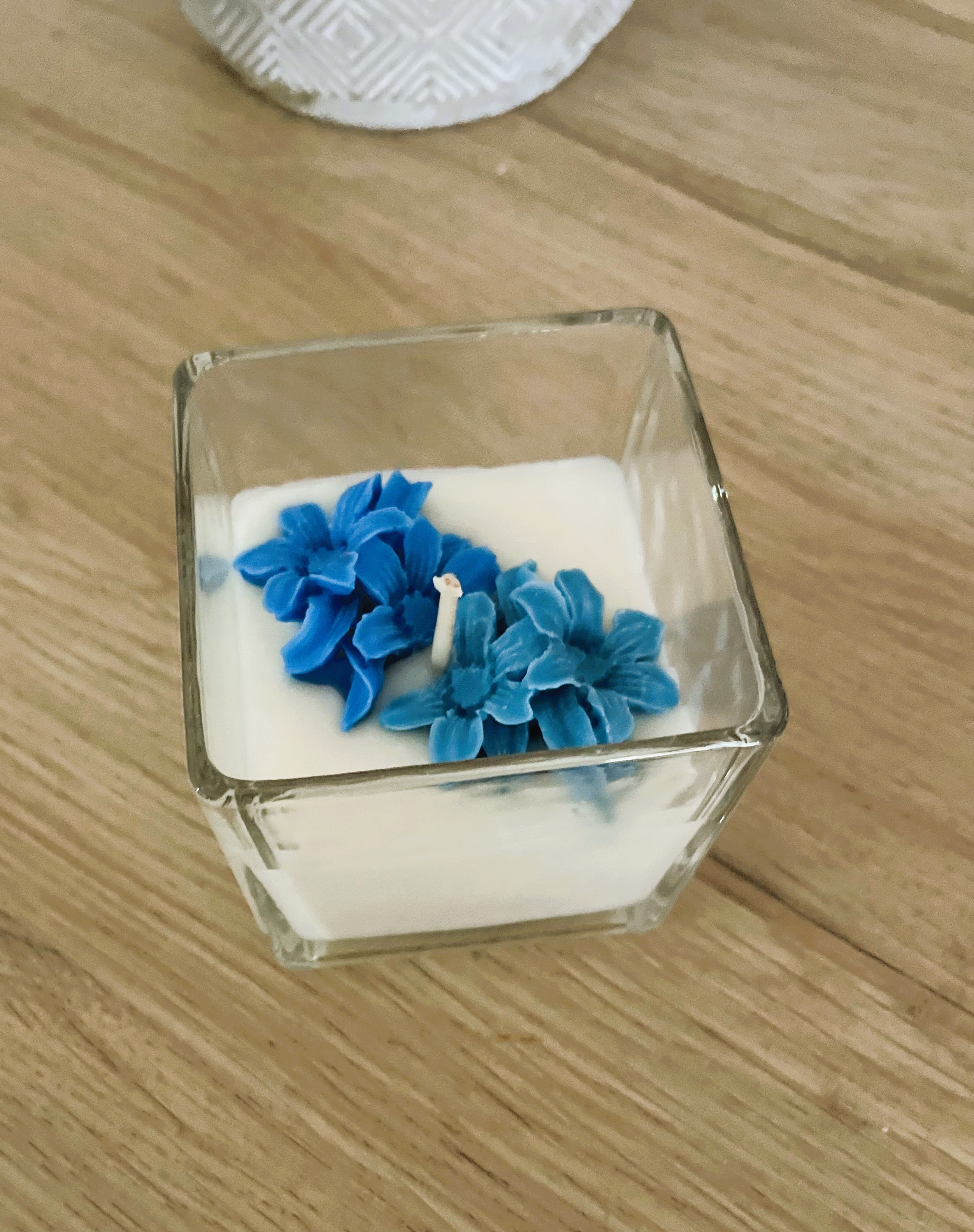 Agrémentée d'une fleur bleue, la bougie florale muguet apportera une touche décorative et colorée dans votre pièce. Son parfum "muguet" envoûtera votre intérieur avec une odeur fraîche de fleurs blanches.